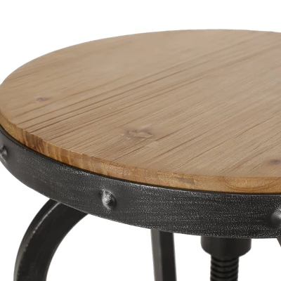 Center your kitchen or dining space with a sleek, edgy look by accenting your interior décor with our swivel barstool. This barstool offers an exceptional industrial modern appeal for any space with its wrought-iron frame and distressed firwood seating. Ideal for those who have a variety of guests, this seat offers adjustable and swivel functions for easy maneuverability and personalization, making this a perfect fit for all. With its refined design and flawless capabilities, this impressive barstool allows you to create an atmosphere of raw charm.