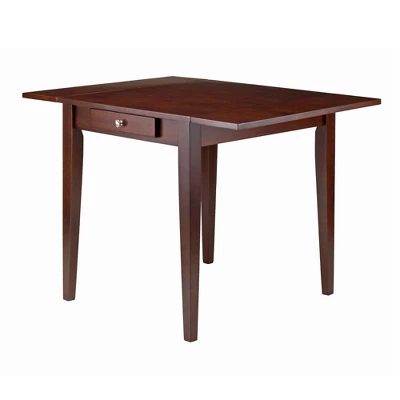 The Hamilton 3pc Set Drop Leaf Table with Ladder Back Chairs – Walnut – Winsome is a classic dining table and a space-efficient seating solution. This dining set has a square table top with two drop leaf extensions on either side. A single drawer is a handy storage space. Two matching wooden dining chairs have a traditional ladder-back design. This drop-leaf table set has a traditional design, but its simplicity makes it a good fit for modern interiors as well. Versatile in terms of style and space, this dining set is effortlessly chic with a welcoming feel.