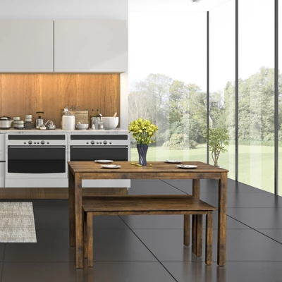 - Include 1 rectangular dining table and 2 benches, for daily dining needs