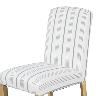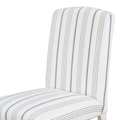 - [Two Color Options] There are 2 colors to choose from, both white and natural wood tables are matched with light blue striped linen upholstery chairs, the white tabletop is pine veneer, and the natural wood tabletop is acacia veneer. Both of these colors are low-saturation color schemes that work well with any home decorating style theme.