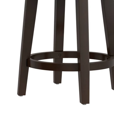 Simple and studded, the Hillsdale Furniture Benard Backless Swivel Bar Height Stool has a downplayed design. This wood bar stool features oversized nail head accents and welt piping around the seat to add visual interest. Its unique deep smoke brown wood finish and weathered dark brown upholstery make it an ideal addition to most color palettes and décors. A perfectly placed footrest and padded seat with 360° swivel functionality offer a relaxing experience to you and your guests. Perfect for use at kitchen islands or bar height dining tables. Assembly required.