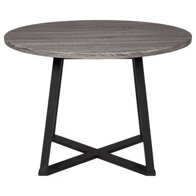 With its distinctive X-shaped metal base, the Centiar round dining table serves up a fresh twist on mid-century inspired style. Its mixed material and two-tone aesthetic are beautifully in balance. Sporting a dramatic charcoal gray hue, the top is crafted of durable melamine allowing it to weather years of family thrills and spills. Signature Design by Ashley is a registered trademark of Ashley Furniture Industries, Inc.