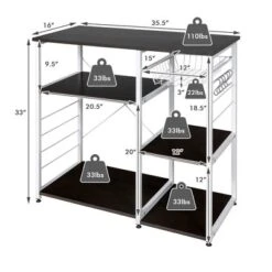 - 4-Tier shelf is multifunctional to store microwave, dishes, kitchen appliances, and something else.