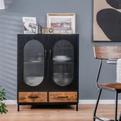 This industrial style microwave oven stand has a spacious storage space that allows for more kitchen utensils. Equipped with six S-shaped hooks and stemware racks, the kitchen shelf offers you perfect place to hang your wine glasses or cups. And the overall structure is solid and stable without shaking. Moreover, the removable top shelf will satisfy more of your demands. The industrial style design makes it suitable for a variety of scenarios. And the smooth countertop is quite easy to maintain, saving much of your effort.