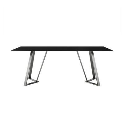 The Cressida Glass Top Dining Table from Armen Living is a contemporary dining table that will refine your kitchen and dining area. It features a strong and striking stainless steel 4-legged base, giving it sleek and stunning visual appeal. The rectangular black tempered-glass top displays an alluring and inviting look, as well as possess traits such as durability – lasting years for you and your home! Modern in style, this table is perfect for relaxing with a glass of wine after work or enjoying entertaining a large group of guests. Pair it with any of the dining chairs from any of our collections at Armen Living.