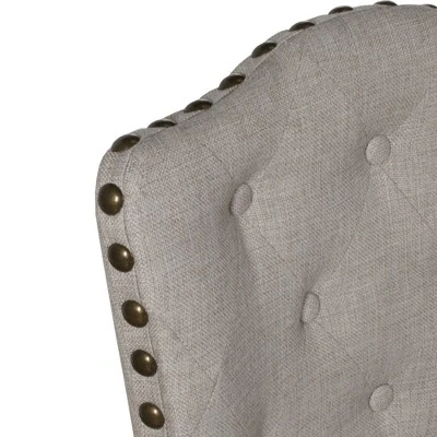 Classy and elegant, the Hillsdale Furniture Edenwood Swivel Counter Height Stool is reminiscent of English pubs with all the comforts of modern style. Cream fabric with button tufting and nail head trim is timeless, while the compound arch and welt piping around the seat elevates the style and shows attention to detail. The Smoke Chocolate wood base features a convenient built-in footrest and 360° swivel functionality for unparalleled comfort. Great addition to your counter height dining table or kitchen island. Assembly required.