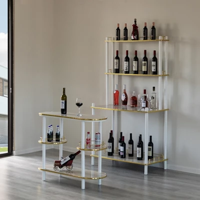 This bar console counter is the perfect for bartenders or party serving station, for your home wine celler room or your upcoming event, easy to assemble and unassembled for your next occasionally use, minimal storage capacity required when unassembled. Proudly display wine bottles, wine racks, flowerpots, vases, and centerpieces. Perfect use for bar serving table, wine room table and bartender serving table. Featuring open shelves for optimum space and storage, the minimalist contemporary design of this bar console counter will conserve space in your living space.