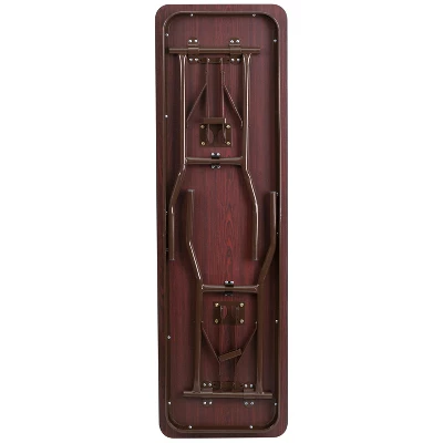 This rectangular wood folding table is beneficial in a multitude of settings that include the classroom, banquet halls and in training rooms. The space saving design can allow multiple tables in a small to large setting making it the perfect training style table for the classroom or any training facility. The table legs fold under the table to make storage more convenient and for better portability. This table is commercial grade to withstand everyday use in the hospitality industry. Additional Features: Brown T-Mold Edge Band, Brown Powder Coated Pedestal Legs, 18 Gauge Steel Legs, Protective Floor Caps
