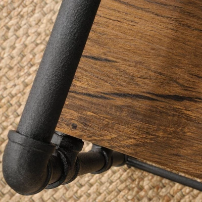 Industrial-inspired style that can roll with you. Add unique design and beauty to any room in your home with this multi-purpose cart from the Iron City collection. This industrial rolling cart features three spacious open shelves that are ideal for storing and displaying an array of different items like your favorite novels, refreshing beverages, decorative plants or some yummy snacks. The possibilities are endless! The two sturdy, 1″ thick shelves feature a Checked Oak finish that stands out and adds beautiful rustic style to any room. The lower shelf features a unique metal pipe design that gives it its one-of-a-kind charm. This bar cart includes casters for mobility so it roll wherever the party takes it. It also includes two locking casters to keep it safely in one spot. This wood and metal bar cart features a textured, powder coated metal pipe frame and is finished on all sides so it’ll look great no matter where it stands in your home.