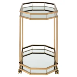 Kamal Glam Brushed Metal And Mirrored Glass 2 Tier Mobile Wine Bar Cart Gold – Baxton Studio
