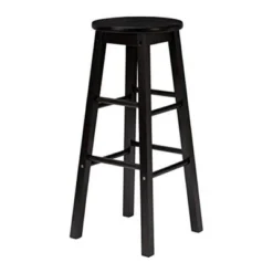 PJ Wood Classic Round-Seat 24″ Tall Kitchen Counter Stools For Homes, Dining Spaces, And Bars With Backless Seats, Square Legs, Black (10 Pack)