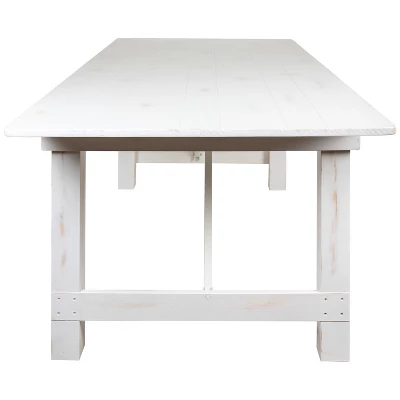 A graceful blend of modern farmhouse and rustic traditional is reflected in this solid pine foldable dining table. Designed to seat up to 8 people, this delightful dinner table will be a perfect addition to your eat-in kitchen or formal dining room. Bold square legs with black 16 gauge steel stabilizing posts provide a contrasting look as well as a stable eating surface. Style this richly finished, antique rustic table to your personal taste to create a warm inviting atmosphere for entertaining as well as family time.