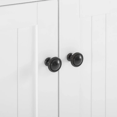 - Two adjustable and removable shelves in each cabinet with a 15lb weight limit per shelf