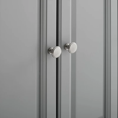 Constructed of solid hardwood and wood veneers, this mobile kitchen cart is designed for longevity. The beautiful raised panel doors and drawer fronts provide the ultimate in style to dress up your kitchen. Two deep drawers are great for anything from utensils to storage containers. Behind the four doors, you will find adjustable shelves and an abundance of storage space for things that you prefer to be out of sight. The heavy duty casters provide the ultimate in mobility. When the cabinet is where you want it, simply engage the locking casters to prevent movement. Style, function, and quality make this mobile kitchen cart a wise addition to your home.