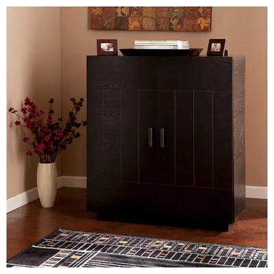 Add a touch of midcentury design to your entertaining space with the Aiden Lane Elgin Bar Cabinet Wood/Black. Interior compartments neatly organize glassware, bottles, and utensils, while fluted cabinet doors add a classic feel and keep essentials out of sight. Place this double-door bar cabinet in your dining area to serve up cocktails at your next dinner party, or add to your open concept living space to enjoy snacks and drinks with friends. Host in style with this storage bar cabinet.
