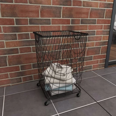 - •This stylish laundry basket with wheels showcase a tall rectangular wire basket designed with two U-shaped side metal handles