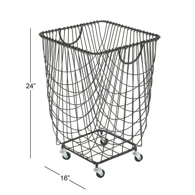 This storage cart is a refined and stunning statement piece that gives function and unique display in any space with its deep basket style cart. This item ships in 1 carton. Features easy-roll swivel caster wheels. Suitable for indoor use only. This item ships fully assembled in one piece. Maximum weight limit is 15 lbs. This is a single black colored laundry cart. Industrial style.