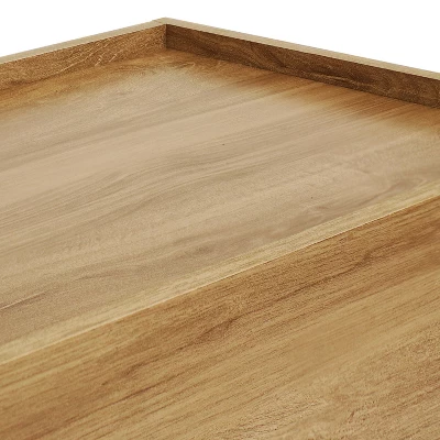 Add storage and style to any room in your home with this modern sideboard table. Made of scratch- and stain-resistant medium density particleboard (MDP), this modern table features an industrial-inspired design. The legs are made of powder-coated steel and feature protective PVC feet to help prevent scratching or scraping the floor beneath the table. Featuring a hydraulic hinge for easy opening, the front panel can be pulled down to access two inner compartments for convenient storage. Tuck clutter items like remote controls, video game controllers, magazines, and more out of sight when not in use. This versatile table can be used in a variety of indoor locations. Add it to the kitchen or dining room to store seasonal serving dishes, platters, or drink glasses, or place it in the living room and use it as an industrial tv stand (for TVs 60″ in size or smaller).