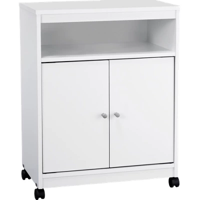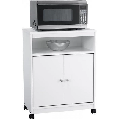 Room & Joy Teton Creek Microwave Cart is exactly what you need to create storage space in your kitchen. This Microwave Cart features a large top surface, 1 open shelf and concealed storage behind 2 doors. When not in use, simply roll the Cart out of the way. The Microwave Cart works well with any kitchen decor. Room & Joy Teton Creek Microwave Cart requires assembly upon delivery.