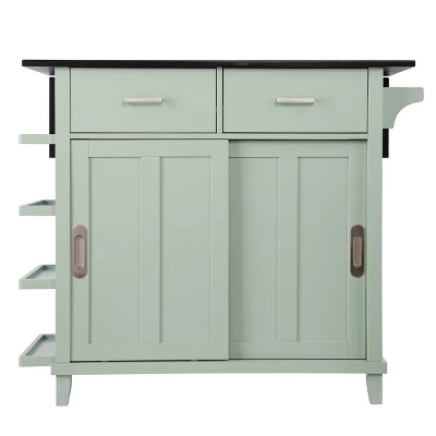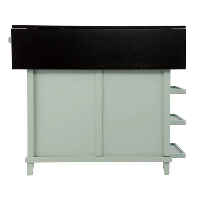 Give your kitchen the storage space it needs with the Aiden Lane Thall Freestanding Kitchen Island. A drop-leaf panel expands your tabletop for extra prep space or last-minute guest seating, while sliding cabinet doors tuck away fine china or serving platters. Place this two-tone island in your kitchen to pack lunches and snacks, or station in your open concept space to entertain family and friends. Functional design comes home when you add this freestanding kitchen island to your space.