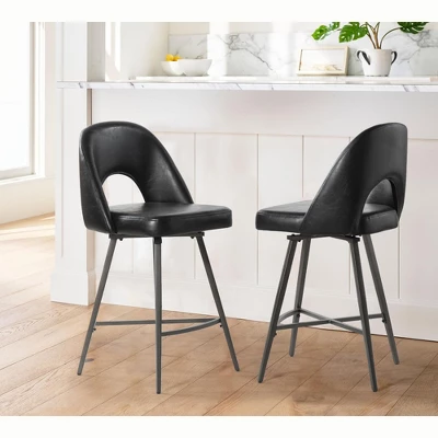 This stylish and contemporary bar stool seamlessly blends modern and mid-century modern design elements. This bar stool set with cutout design is the perfect addition to any space, whether it’s your kitchen, living room, bar, restaurant, club, cafe, or office. This bar stool set is upholstered with high-quality vegan leather, which is both durable and easy to clean. Both the backrest and seat cushion are filled with soft and supportive foam providing a comfortable seating experience that’s perfect for extended periods of sitting. The legs are made of sturdy metal, which ensures maximum stability and durability. Its durability and comfort make it a practical and long-lasting seating option for any space. Item Size:18.1″W*20.25″D*38.5″H, Seat Size:17.25″W*18.5″D*26″H.