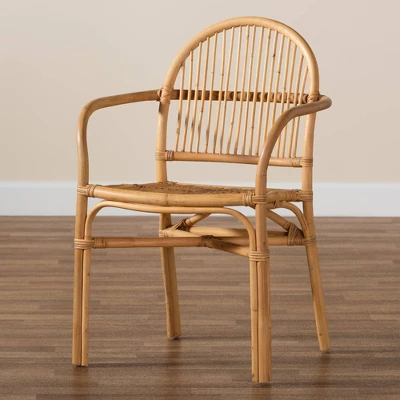 Renew the adoration for your dining space with the remarkable allure of the Tugera dining chair. Made in Indonesia, this chair is handcrafted by skilled artisans with natural rattan. The round backrest is interlaid with slim rattan rods for a smooth embrace, while the pronounced armrest offers convenient comfort. The Tugera will arrive fully assembled and features angled legs connected by a crisscross base for excellent stability and support. Encapsulating the allure of an exotic retreat, the Tugera dining chair elevates the mood of any occasion.