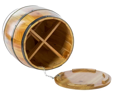 - Interior wine barrel crate can hold 4 bottles